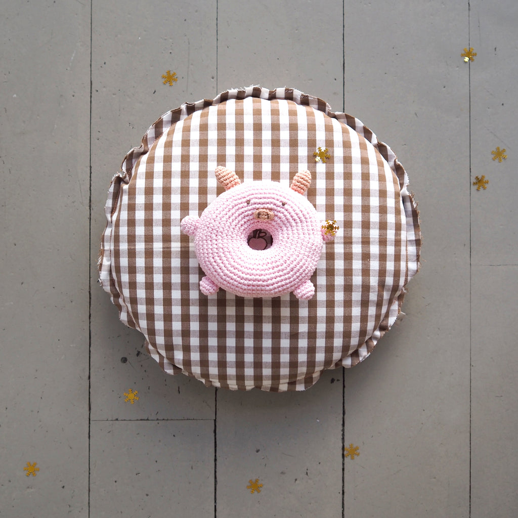 PinkIt’s not easy to resist a donut, especially Mungo & Maud’s Donut-Piglet Dog Toy. Since this one is crocheted, there is no need to pig out.