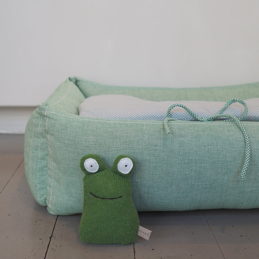 - Wool knit frog dog toy