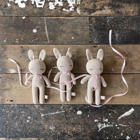 Beatrice finds hopping rather dull. She is a peaceful bunny and can often be found laying flat out on a bed. Of course, she likes a bit of play and tickle and sometimes lets out a squeak.